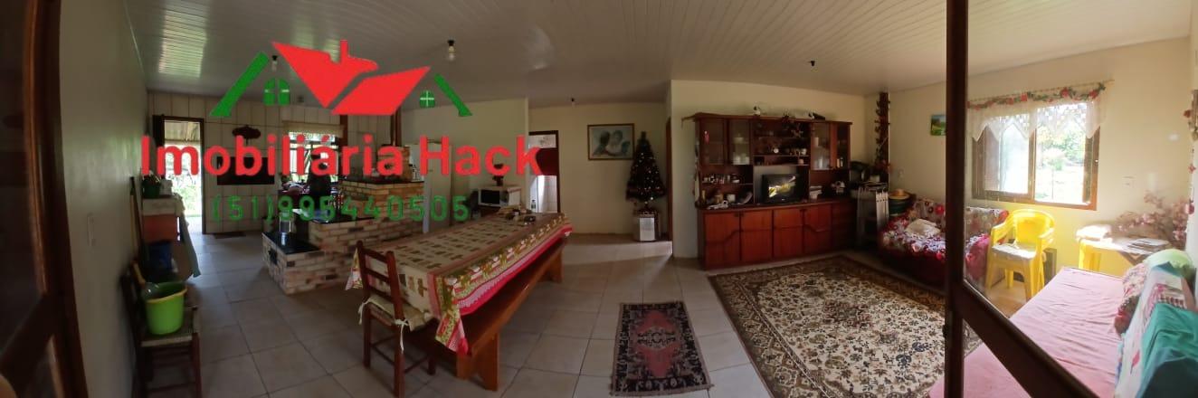 Sala e cozinha integradas , tendo um fogão campeiro